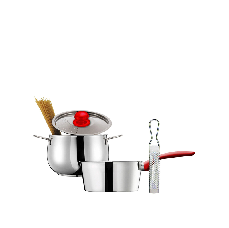 Eatitaly Multikit 4pce – 1 Cook & Drain Pot 4.5lt, 1 Conic Saucepan 220mm, 1 Fine Grater S/S